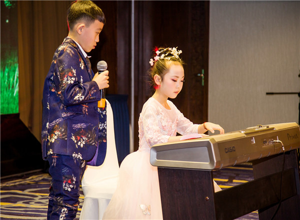 公司子弟聯袂表演的情景劇鋼琴演奏(zòu)《春之歌》、《輝煌的大圓舞曲(qǔ)》、鋼伴歌《你笑起來真好看》。